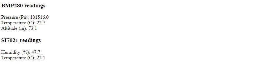 The GY-21P is an interesting module in that it combines a BMP280 sensor and an SI7021 sensor. The on-board BMP280+SI7021 sensor measures atmospheric pressure from 30kPa to 110kPa as well as relative humidity and temperature.