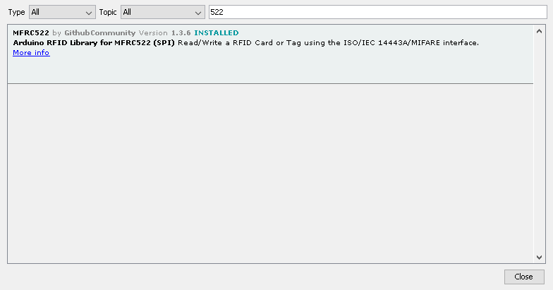Install the RFID522 library – https://github.com/miguelbalboa/rfid