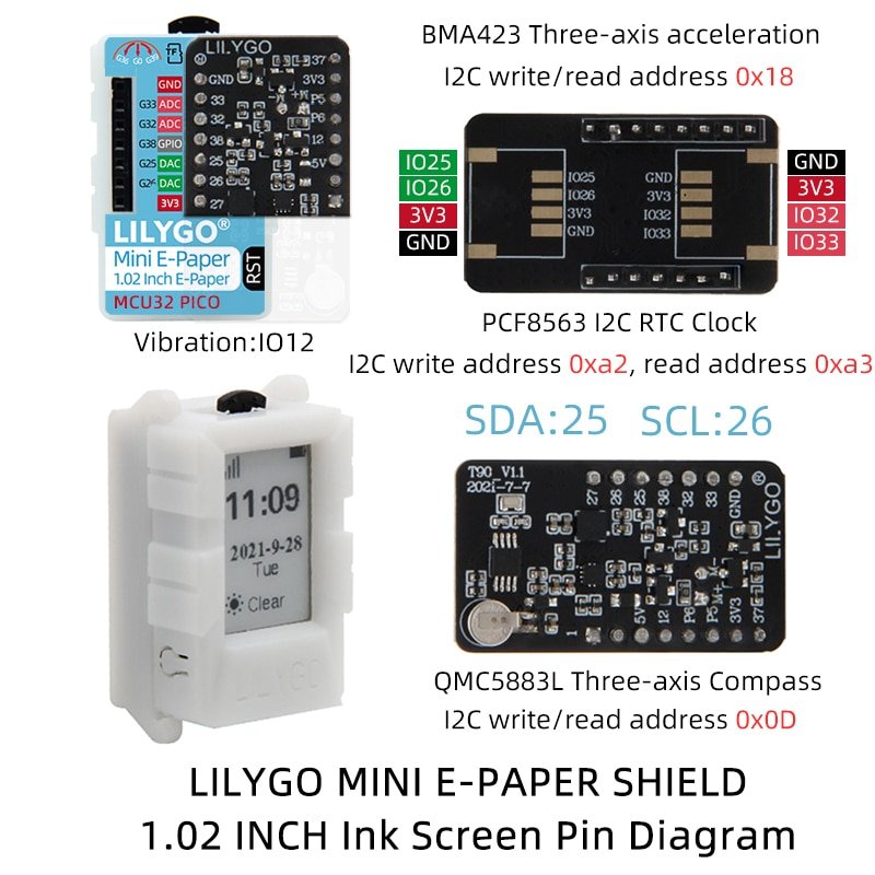 TTGO MINI E-Paper Shield RTC Magnetoresistive Sensor Accelerometer Vibration motor